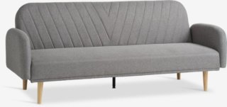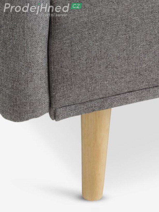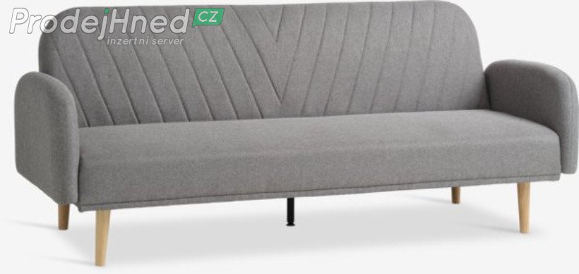 Rozkládací třímístnou pohovku PARADIS v pefektním stavu světle šedý potah nohy masiv barva dubu