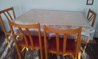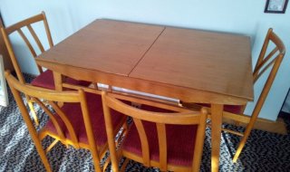 Prodám původní jídelní stůl ze 70. let v bezvadném stavu, včetně židlí. Stůl je rozkládací.