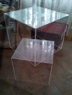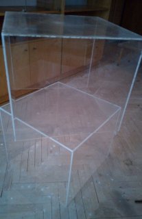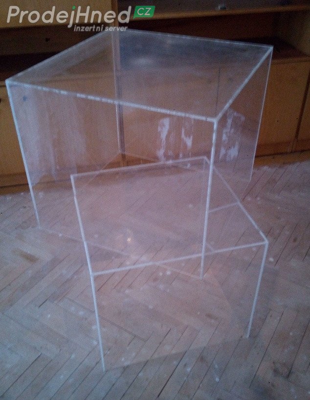 Nabízím retro skříňky, police, stolek, kostky z plexiskla za odvoz