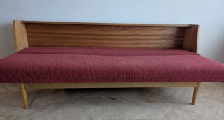 Prodám rozkládací retro pohovku JITONA v bezvadném stavu, československá výroba, cca 60. léta. Klasický nadčasový design, pevná dřevěná konstrukce, typické kónické nožky.